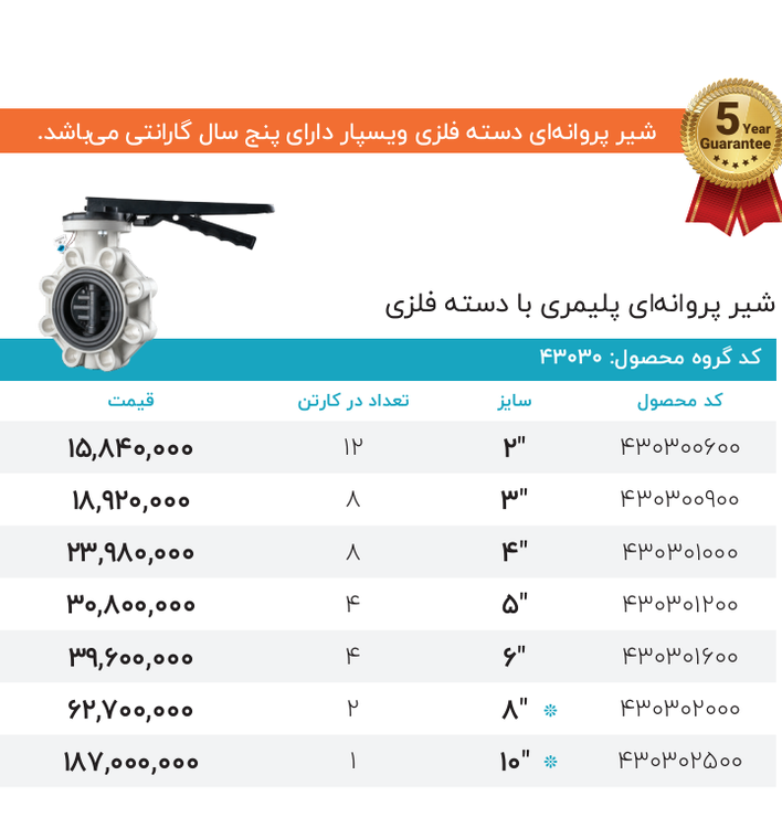 شیرپروانه ای پلیمری ویسپار
